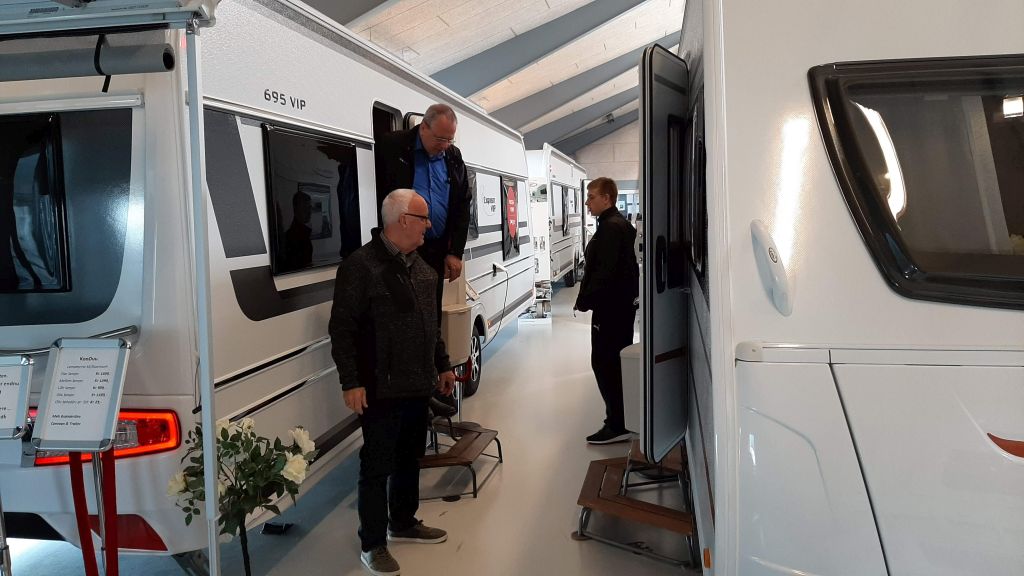 Vi fik set det store udvalg af nye og brugte campingvogne, han har stående, samt alt det tilbehør han har i sin butik.