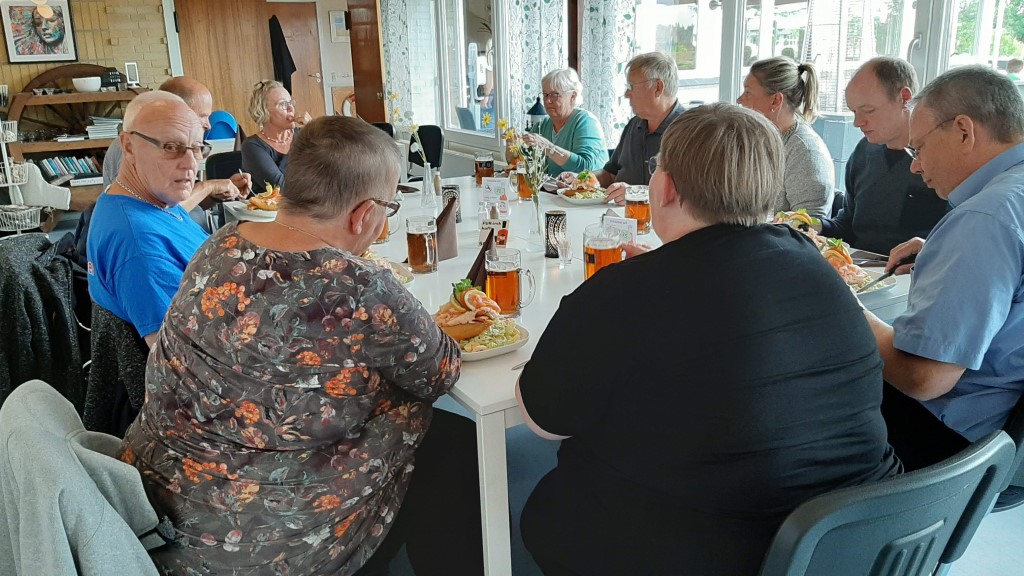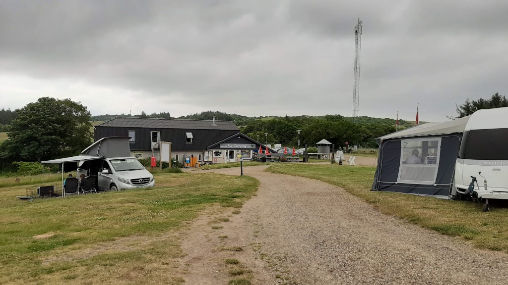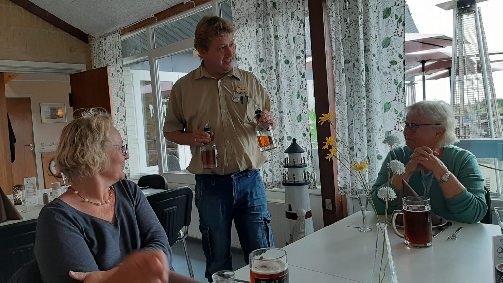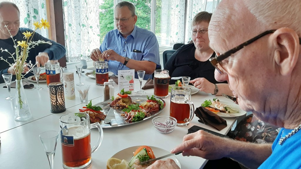 Til frokost fik vi 3 stykker smørrebrød med Fur øl og Fur snaps i restauranten på campingpladsen.