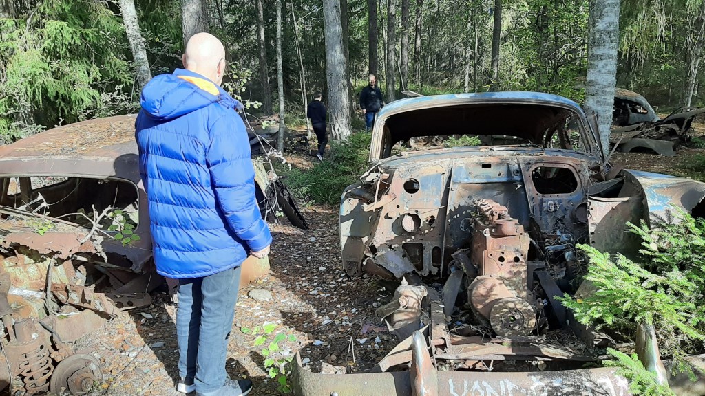 Om eftermiddagen kørte vi ud til bilkirkegården i Ryd.