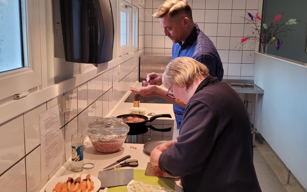 Om aftenen havde vi købt mad ind, som vi sammen grillede og spiste i opholdslokalet ved køkkenet.