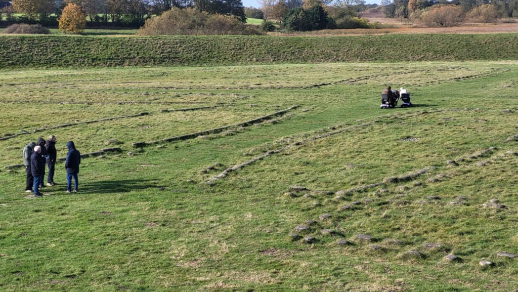 Lørdag tog vi til Vikingeborgen Trelleborg, hvor Lucas guidede os rundt og fortalte om borgen.