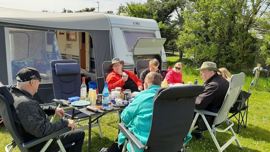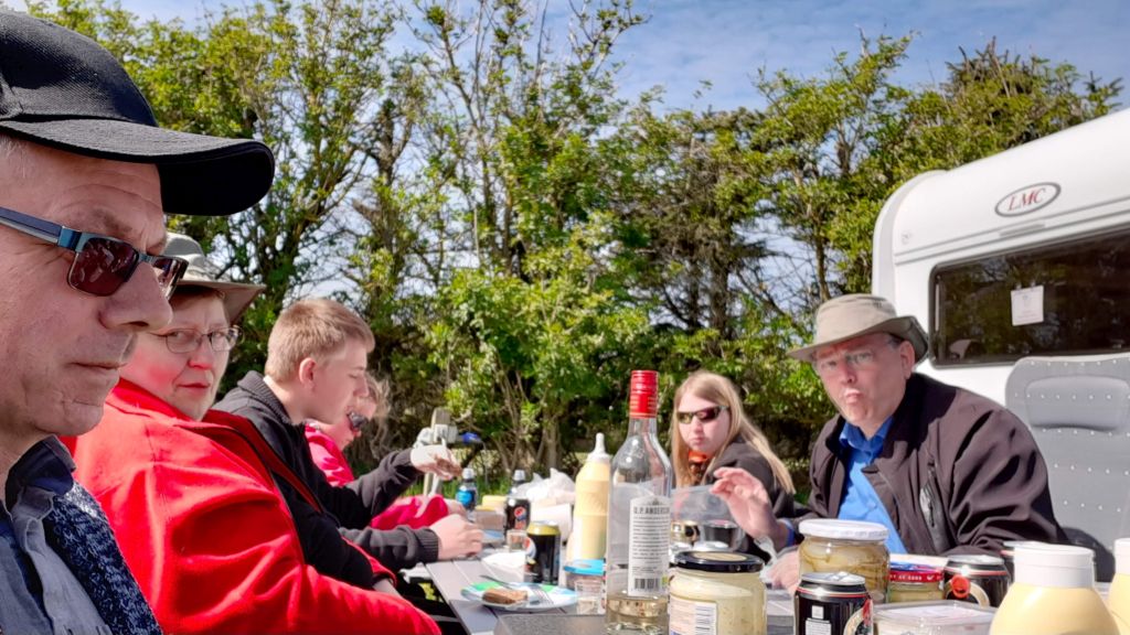 Herefter gik turen atter til campingpladsen, hvor vi igen kunne spise frokost sammen, udenfor mellem vognene.