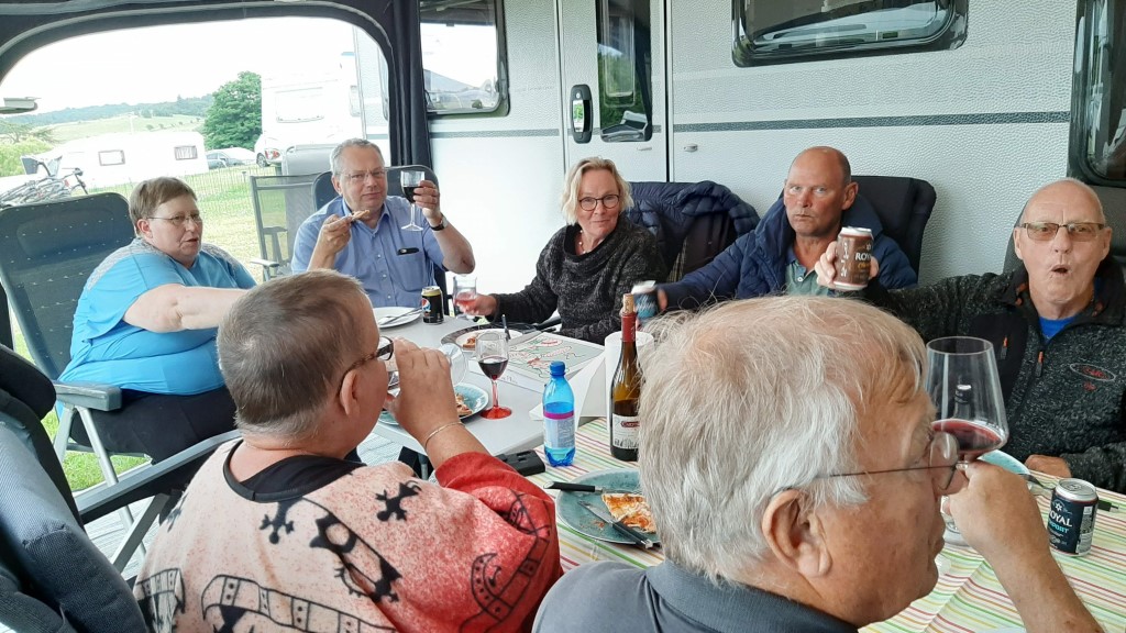 Fredag aften fik vi leveret pizza ved vognene, som vi sad og spiste sammen i Lotte og Oles telt.