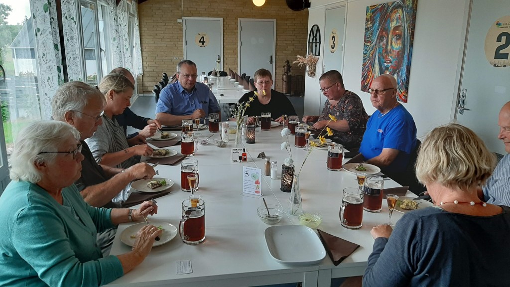 Til frokost fik vi 3 stykker smørrebrød med Fur øl og Fur snaps i restauranten på campingpladsen.