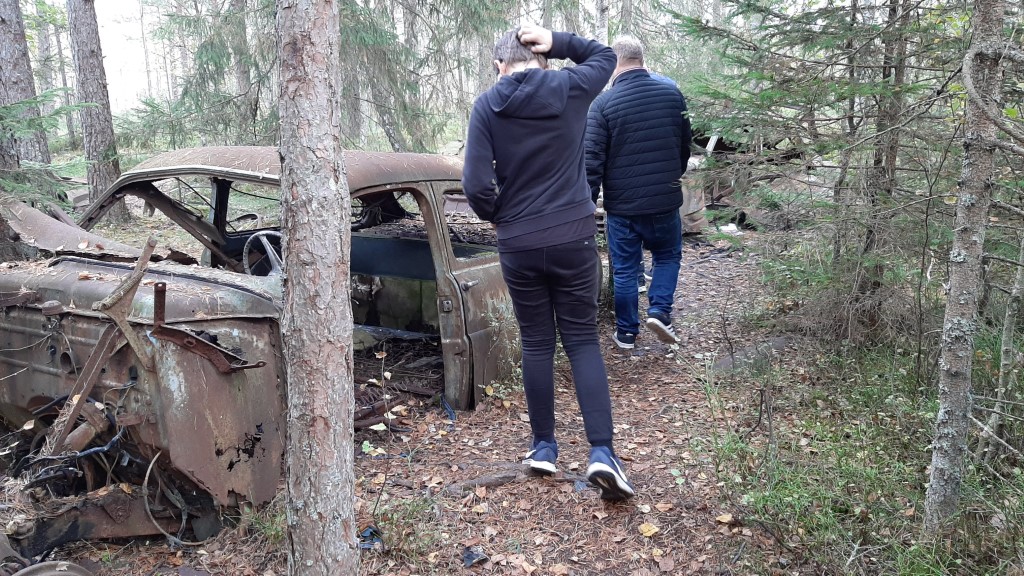 Om eftermiddagen kørte vi ud til bilkirkegården i Ryd.